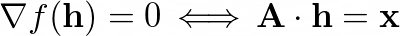 Unser Bauchgefühl sagt uns: Irgendwie müssen unnötige Steigungen vermieden werden. Dieses Bauchgefühl lässt sich in eine Kostenfunktionf gießen, welche einem Graph die mit den Kantenlängen gewichteten Kantensteigungen zuordnet. Scheut man sich nicht, auch mal Papier und Bleistift in die Hand zu nehmen, so kommt man nach einigen Umformungen zum Schluss, dass solch eine Kostenfunktion genau dann minimiert wird, wenn an jedem Knoten mit unbekannter Höhe die Summe der einlaufenden Kantensteigungen verschwindet. Auch ein Blick auf das triviale Beispiel der linearen Interpolation zeigt, dass dies hiermit konsistent ist, denn an jedem Punkt einer Geraden geht es links davon genauso steil den Berg hoch, wie es rechts den Berg runter geht, um es salopp auszudrücken. Netterweise lässt sich diese Minimierungs-Bedingung als lineares Gleichungssystem schreiben, das heißt man findet eine Matrix A und einen Vektor x, so dass für den Vektorh der gesuchten Höhen gilt: